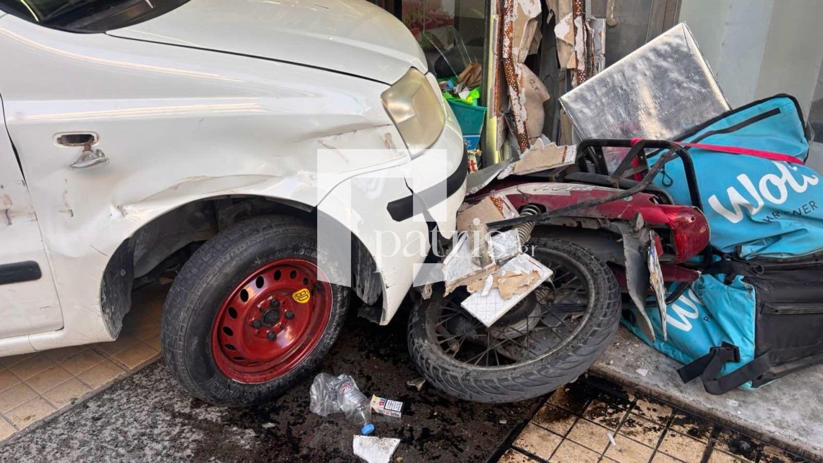 Οι άνθρωποι μόλις είχαν προλάβει να μπουν μέσα στο κατάστημα όταν ο οδηγός του άσπρου αυτοκινήτου πάτησε γκάζι και αφού παρέσυρε το ένα μηχανάκι «καρφώθηκε» στη βιτρίνα του καταστήματος.