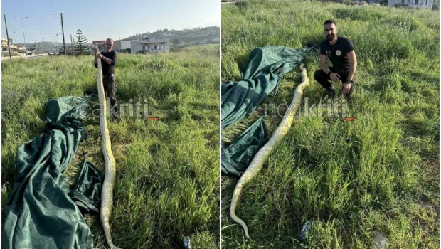 Βρήκαν γιγάντιο πύθωνα σε χωράφι στην Κρήτη – Υπολογίζεται σε μήκος περίπου 5 μέτρα