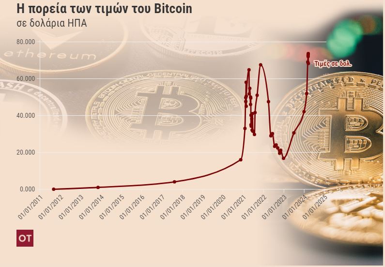 Με τις τιμές να ξεπερνούν ακόμη και τις 73.000 δολάρια, επανήλθαν στην αγορά μνήμες ανάλογες με αυτές έως το 2021, όταν το κρυπτονόμισμα είχε καταγράψει αισίως το προηγούμενο ιστορικό ρεκόρ στα 69.000 δολάρια. Αυτό είχε συμβεί το Νοέμβριο του 2021. Στη συνέχεια όμως καθώς οι κεντρικές τράπεζες άρχισαν να αυξάνουν τα επιτόκια και ξέσπασαν σκάνδαλα στον κλάδο, οι επενδυτές είχαν στραφεί αλλού προκαλώντας μεγάλη βουτιά στις τιμές.