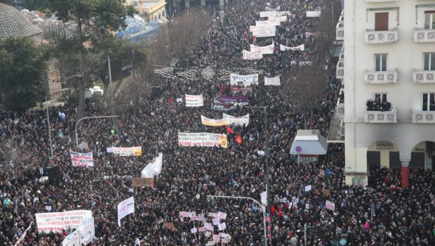 Με συνθήματα όπως «δεν έχω οξυγόνο», «ήταν τα παιδιά μας», «όχι στη συγκάλυψη», χιλιάδες πολίτες δίνουν το παρών στο μεγαλειώδες συλλαλητήριο στο κέντρο της Θεσσαλονίκης, με αφορμή τη συμπλήρωση δύο χρόνων από τη σιδηροδρομική τραγωδία στα Τέμπη όπου 57 άνθρωποι σκοτώθηκαν.