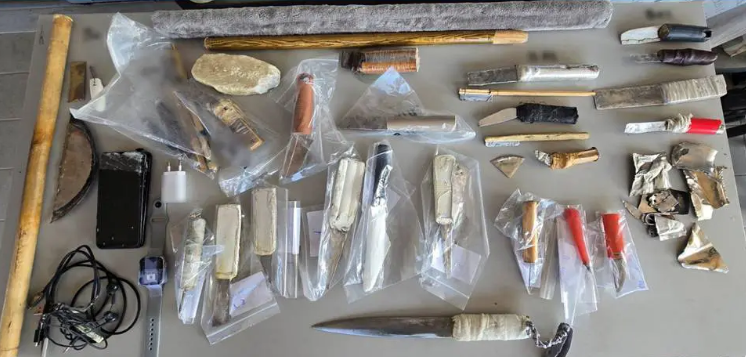 Στο πλαίσιο της επιχείρησης, παρουσία εισαγγελικών λειτουργών, πραγματοποιήθηκαν έρευνες σε κελιά, θαλάμους και κοινόχρηστους χώρους του Σωφρονιστικού Καταστήματος, όπου συνολικά βρέθηκαν και κατασχέθηκαν -18- αυτοσχέδια μαχαίρια, -3- αυτοσχέδια ξύλινα ρόπαλα, -14- μεταλλικές λάμες, αυτοσχέδιο κατσαβίδι, -9- αυτοσχέδια μεταλλικά αντικείμενα με τοποθετημένες μεταλλικές λάμες, 2- αυτοσχέδια σουβλιά και τμήμα μαρμάρου.