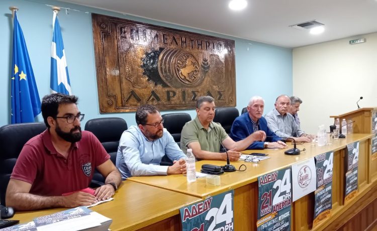 Τα παραπάνω ειπώθηκαν στη συνέντευξη τύπου που δόθηκε στην αίθουσα του Επιμελητηρίου Λάρισας από κλιμάκιο της ΑΔΕΔΥ ενόψει της Γενικής Πανδημοσιοϋπαλληλικής Απεργίας της 21ης Μαϊου.