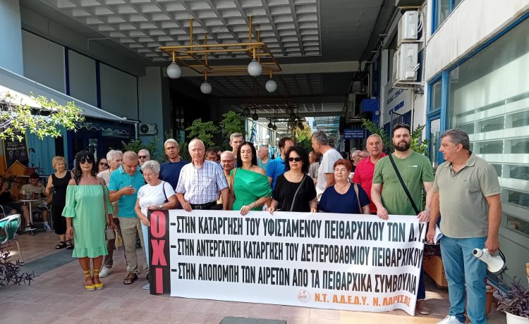 Συγκέντρωση διαμαρτυρίας πραγματοποίησαν και στη Λάρισα οι απεργοί δημόσιοι υπάλληλοι. Κρατώντας πανό έξω από την Αποκεντρωμένη Διοίκηση Θεσσαλίας, ζήτησαν να αποσυρθεί το νομοσχέδιο για το νέο πειθαρχικό δίκαιο “που καταργεί το Β΄βάθμιο Πειθαρχικό Συμβούλιο και το δικαίωμα ένστασης, αλλάζει τη σύνθεση των Πειθαρχικών Συμβουλίων με την αφαίρεση των εκπροσώπων των εργαζομένων και των δικαστών και προβλέπει εξαιρετικά μεγάλα πρόστιμα” όπως τόνισαν.