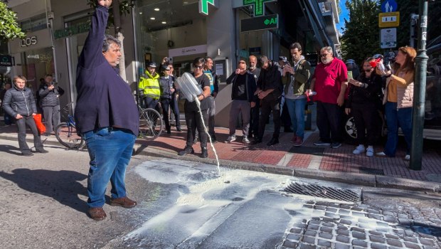 Συμβολικά έριξαν γάλα επί της οδού Παναγούλη.