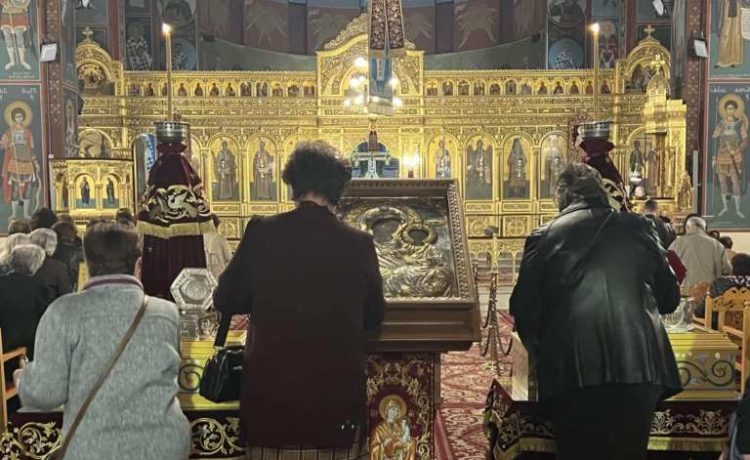 Η υποδοχή έγινε από πιστούς που έσπευσαν να προσκυνήσουν την εικόνα και να παρακολουθήσουν το ιερό Μυστήριο του Ευχέλαιου.