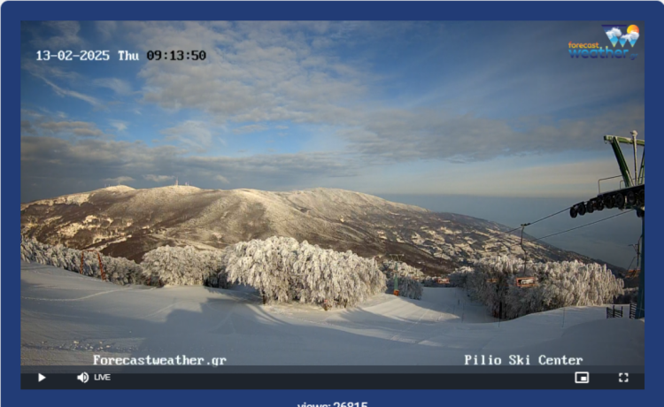 Το Χιονοδρομικό Κέντρο Πηλίου λειτουργεί κανονικά σήμερα, Πέμπτη 13 Φεβρουαρίου, με το ύψος του χιονιού να έχει αυξηθεί κατά 10 εκατοστά μετά τις πρόσφατες χιονοπτώσεις.