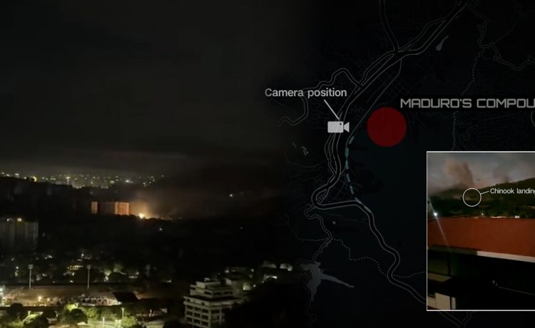 Στο Καράκας, στις 1:58 π.μ., δύο αμερικανικά ελικόπτερα μεταφοράς MH-47 Chinook φαίνονται να πετούν χαμηλά προς το Fort Tiuna, παρακάμπτοντας τη στενή κοιλάδα στην οποία βρίσκεται η στρατιωτική βάση, σύμφωνα με βίντεο αυτόπτη μάρτυρα.