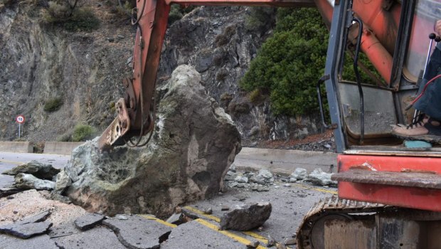 Η διαδικασία της απομάκρυνσης του τεράστιου βράχου έχουν ήδη ξεκινήσει, με τα μηχανήματα της Περιφέρειας να τον θρυμματίζουν έτσι ώστε να γίνει εφικτό να μετακινηθούν τα κομμάτια του.