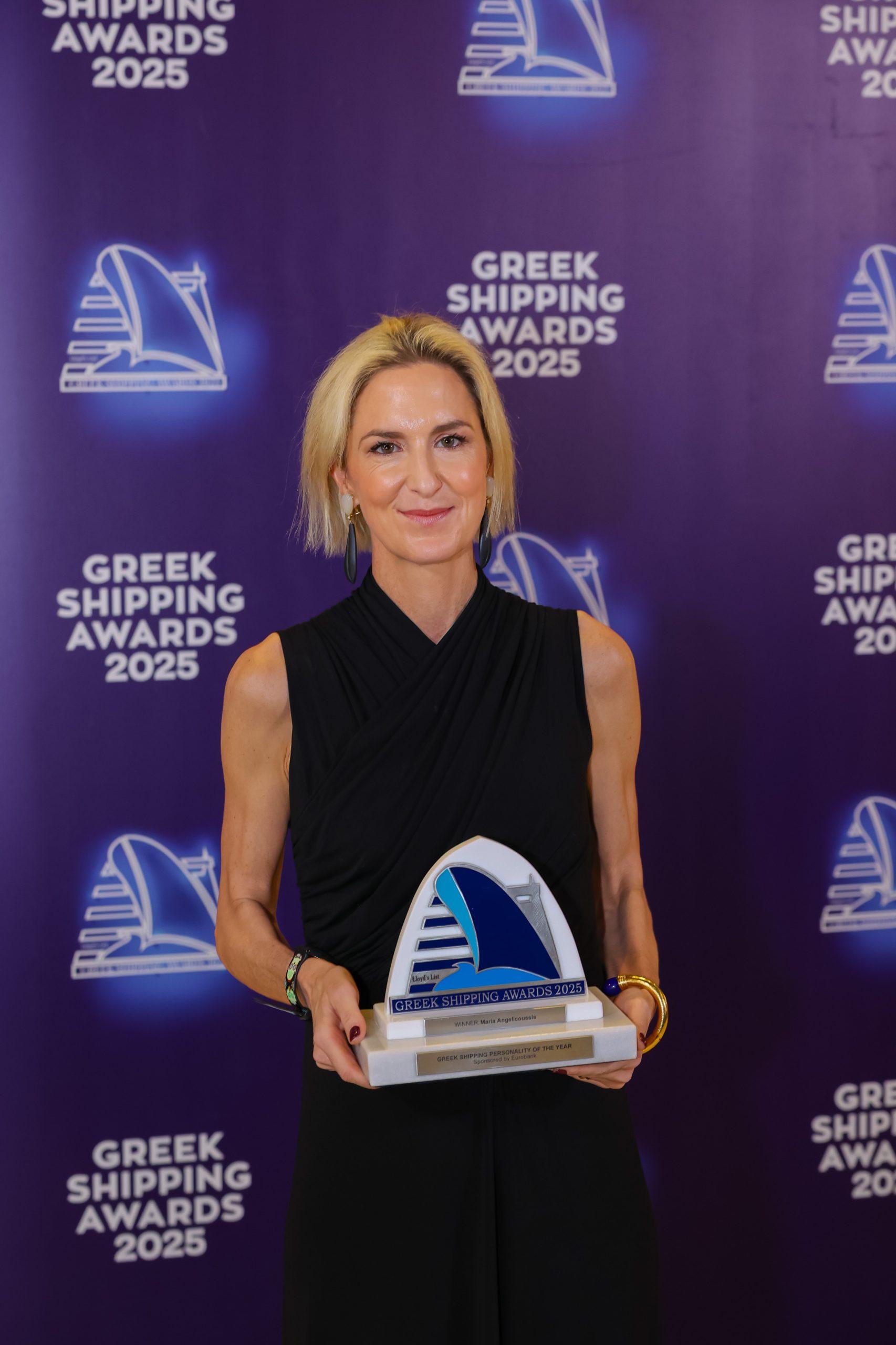 Ως η κορυφαία ναυτιλιακή προσωπικότητα της χρονιάς, τιμήθηκε η Μαρία Αγγελικούση εκπροσωπώντας το μεγαλύτερο ελληνικό ναυτιλιακό όμιλο και συνεχίζοντας την πολυετή παράδοση αριστείας της οικογένειας Αγγελικούση.