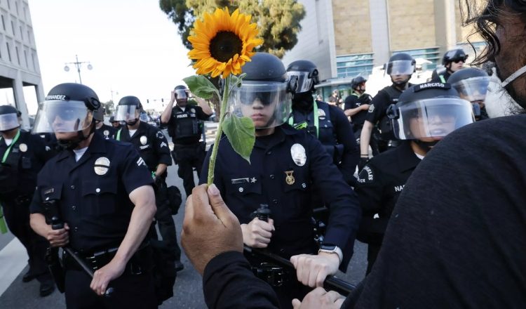 Από την Παρασκευή, το δεύτερο μεγαλύτερο αμερικανικό αστικό κέντρο, με διόλου ευκαταφρόνητο ισπανόφωνο πληθυσμό, έχει μετατραπεί σε θέατρο επεισοδίων ανάμεσα από τη μια σε διαδηλωτές, που καταγγέλλουν τις εφόδους ομοσπονδιακής αστυνομικής υπηρεσίας αρμόδιας για τη μετανάστευση (ICE) με σκοπό τη σύλληψη μεταναστών χωρίς χαρτιά, κι από την άλλη δυνάμεων επιβολής της τάξης, εφοδιασμένων με εξοπλισμό αντιμετώπισης ταραχών. Τα επεισόδια αυτά είναι πάντως σποραδικά και μάλλον περιορισμένης έκτασης.