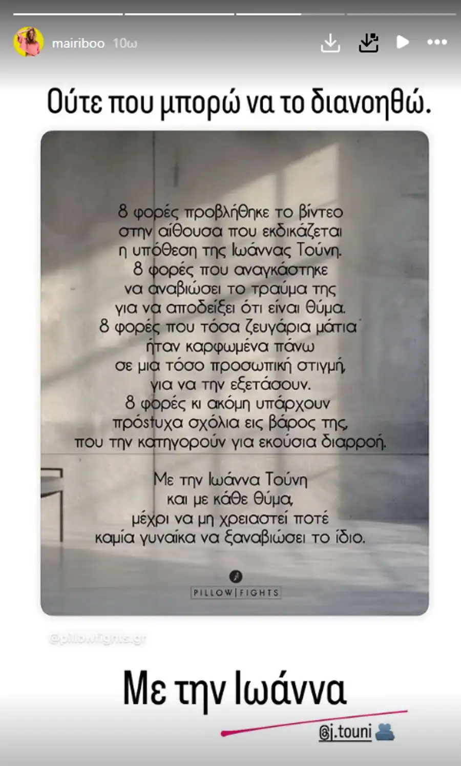Μαίρη Συνατσάκη: Στέκεται δίπλα στην Ιωάννα Τούνη στη δίκη για revenge porn