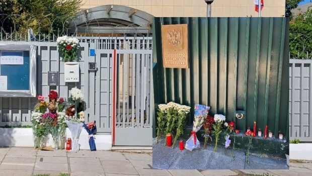 Λουλούδια, κεριά και σημειώματα συμπαράστασης στον ρωσικό λαό, αφήνουν από νωρίς το πρωί, πολίτες τόσο στην Πρεσβεία της Ρωσίας στην Αθήνα όσο και στο Προξενείο στη Θεσσαλονίκη .