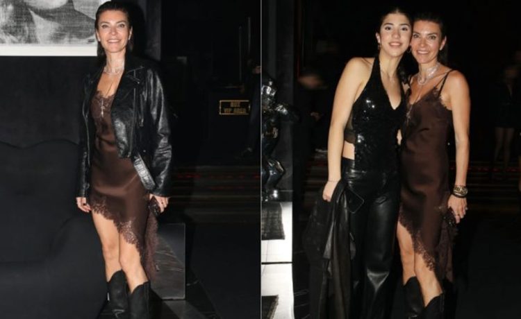 Στο πλευρό της βρισκόταν η κόρη της, Ανέζια, η οποία επέλεξε ένα total black σύνολο με δερμάτινο παντελόνι και λαμπερό τοπ, δημιουργώντας μια πιο νεανική και μοντέρνα εμφάνιση.