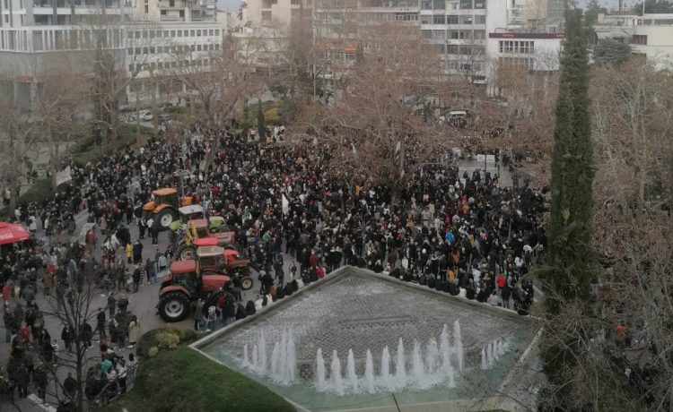 Πλήθος κόσμου βρίσκεται αυτή την ώρα στην κεντρική πλατεία της Λάρισας, όπου βρίσκεται σε εξέλιξη η συγκέντρωση διαμαρτυρίας για το σιδηροδρομικό δυστύχημα των Τεμπών, με αφορμή την θλιβερή επέτειο συμπλήρωσης ενός χρόνου.