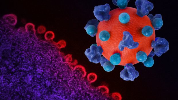 Ο ιός HIV (μπλε) αναπαράγεται σε προσβεβλημένα Τ κύτταρα (κόκκινα). Φωτό από το ερευνητικό εργαστήριο του NIAID στο Maryland των ΗΠΑ