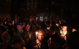 Νωρίτερα, στον Πανάγιο Τάφο, στα Ιεροσόλυμα, είχε γίνει με λαμπρότητα και σε κλίμα ιδιαίτερης συγκίνησης, η τελετή του Αγίου Φωτός.