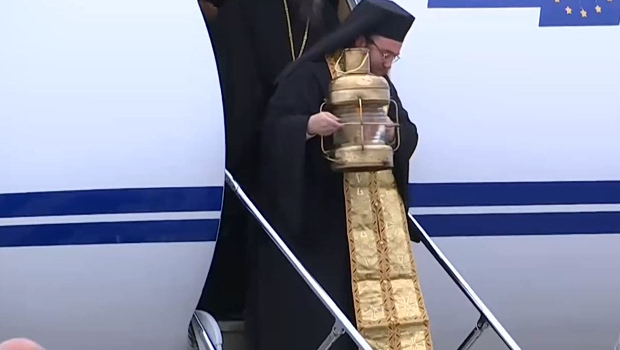 Με λαμπρότητα πραγματοποιήθηκε η άφιξη του Αγίου Φωτός στο αεροδρόμιο Ελευθέριος Βενιζέλος