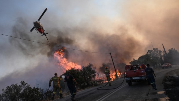 Οι ισχυροί άνεμοι που πνέουν στην περιοχή δυσχεραίνουν σημαντικά την τεράστια επιχείρηση κατάσβεσης που βρίσκεται σε εξέλιξη.