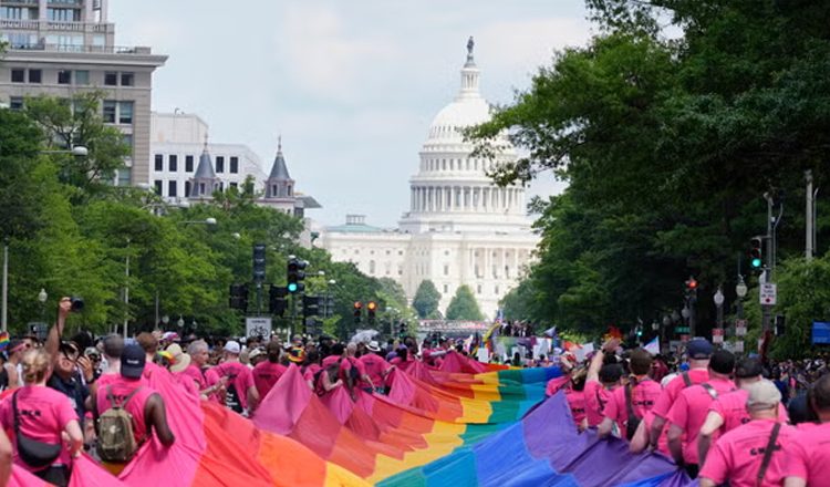 Σημαίες στα χρώματα του ουράνιου τόξου γέμισαν χθες Σάββατο τους δρόμους της Ουάσινγκτον καθώς χιλιάδες άνθρωποι πραγματοποίησαν πορεία με αφορμή την Παγκόσμια Ημέρα Υπερηφάνειας (World Pride), ένα διεθνές γεγονός υπέρ της ΛΟΑΤΚΙ+ κοινότητας που βλέπει τα δικαιώματά της να περιορίζονται μετά την επιστροφή του Ντόναλντ Τραμπ στην προεδρία των ΗΠΑ.