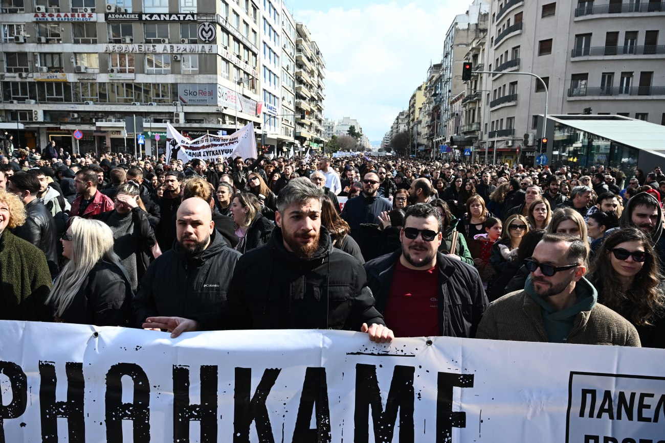 Πανοραμική λήψη από τη συγκέντρωση για τα Τέμπη στη Θεσσαλονίκη