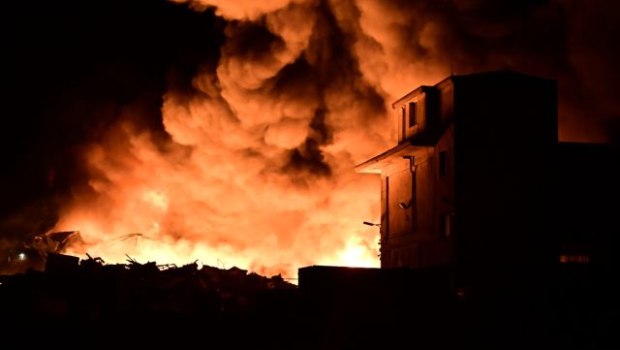 Από τον χώρο των εγκαταστάσεων του εργοστασίου που τυλίχτηκαν στις φλόγες ακούγονταν εκρήξεις, και πληροφορίες ανέφεραν ότι πιθανότατα επρόκειτο για μεγάλες φιάλες προπανίου.