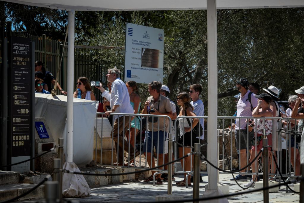 Γκρουπ τουριστών στην Ακρόπολη