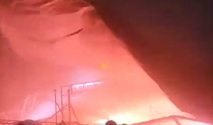 Στη συνέχεια, ο υποψήφιος φαίνεται να τρέχει για βοήθεια καθώς μέρος της εξέδρας ανατράπηκε στη συγκέντρωση.