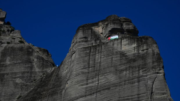 Μια σημαία της Παλαιστίνης βρίσκεται πλέον στα Μετέωρα [βίντεο]