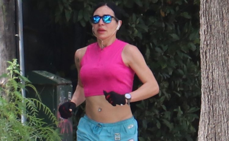 Η γνωστή ηθοποιός απαθανατίστηκε από το φωτογραφικό φακό στο κέντρο της Αθήνας με κοντό αθλητικό σορτσάκι και τοπ μπλουζάκι να κάνει τη γυμναστική της.