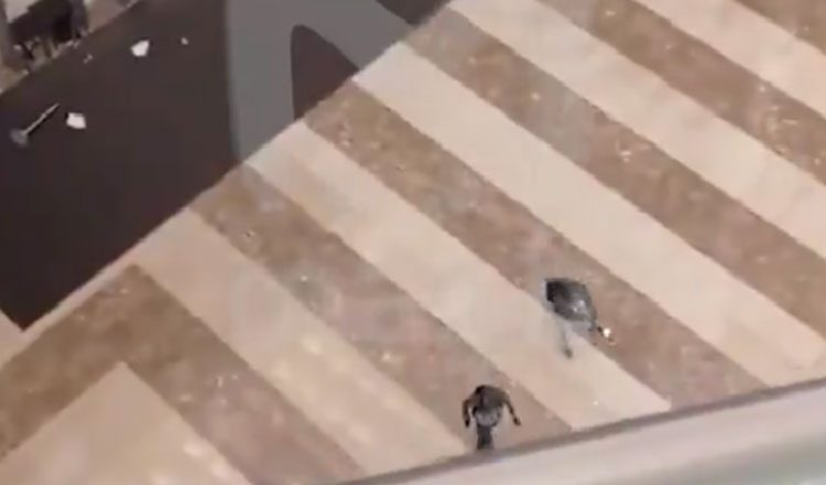 Σε άλλο βίντεο, πολίτης που βρισκόταν στο σημείο κατέγραψε την στιγμή που ένοπλοι δράστες άνοιξαν πυρ εντός του αμφιθέατρου του δημαρχείου. Σε αυτό καταγράφεται ο πανικός που επικρατεί, με τον κόσμο να τρέχει για να καλυφθεί από τις σφαίρες, ενώ ακούγονται οι ρυπές από τα αυτόματα όπλα.