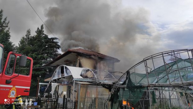 Η φωτιά εκδηλώθηκε νωρίς το απόγευμα της Παρασκευής στην οικία και στο φυτώριο που έχουν οι ιδιοκτήτες ακριβώς δίπλα.