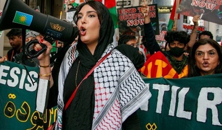 Η εβραϊκή γαλλική ένωση για την ειρήνη (UJFP) πρόβαλε το σύνθημα «Εβραίοι και αντισιωνιστές, τασσόμαστε υπέρ ίσων δικαιωμάτων». Συμπαγές πλήθος φώναζε ρυθμικά συνθήματα όπως «Ισραήλ δολοφόνε, Μακρόν συνεργέ», «Είμαστε όλοι τα παιδιά της Γάζας», «το Ισραήλ δολοφονεί τα παιδιά της Παλαιστίνης»…