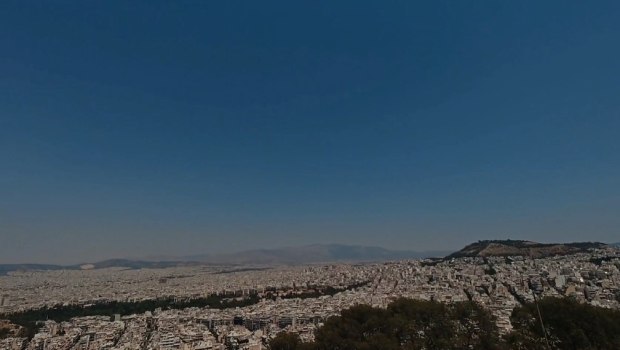 Ο καπνός στην Αττική -όπως φαίνεται στις εικόνες από τον Λυκαβηττό- ήταν κυρίως ορατός στον ορίζοντα, ωστόσο σε νησιά όπως η Λέσβος και η Χίος «μαύρισε» μεγαλύτερο τμήμα του ουρανού.
