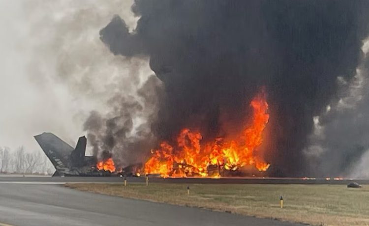 Σε εικόνες που μεταδίδουν αμερικανικά τηλεοπτικά δίκτυα φαίνονται τα φλεγόμενα συντρίμμια του αεροσκάφους, το οποίο ανήκει στον βετεράνο οδηγό αγώνων NASCAR Greg Biffle.