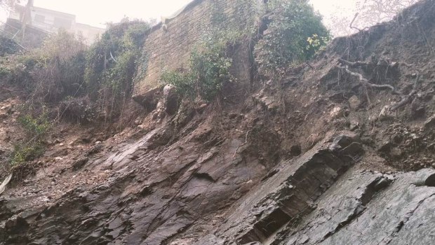 Μια πλευρά του μύλου, που είναι χαρακτηρισμένος ως νεότερο μνημείο από το υπουργείο Πολιτισμού, βρίσκεται στο κενό, καθώς υποχώρησε ένα μέρος του βράχου στον οποίο είναι χτισμένος.
