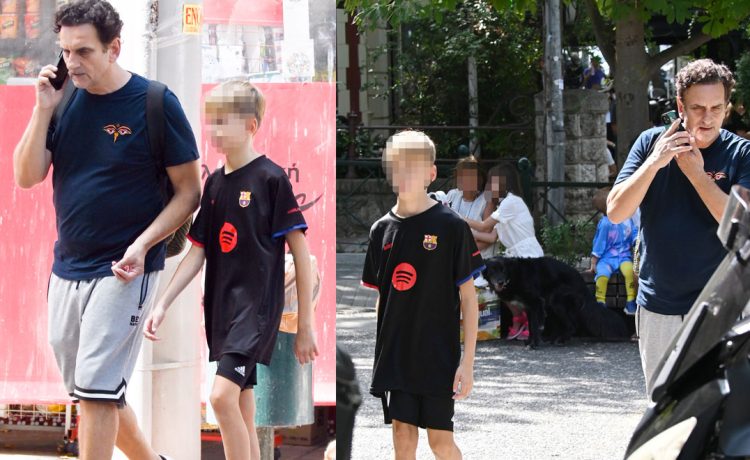 Ο φωτογραφικός φακός εντόπισε τον Νίκο Ψαρρά στη Κηφισιά, σε μια χαλαρή βόλτα με τον γιο του, Πάνο.