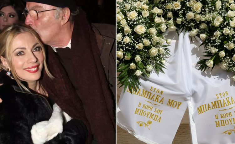«Στον μπαμπάκα μου. Η κόρη σου, Μπούμπα» γράφει το στεφάνι που έστειλε η Σμαράγδα Καρύδη στη μνήμη του πολυαγαπημένου της πατέρα και σπουδαίου ηθοποιού, Ντίνου Καρύδη.