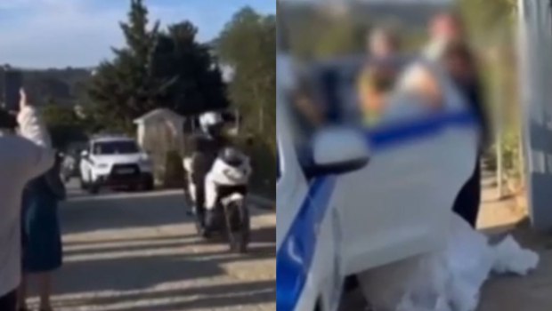 Τα πλάνα με τη νύφη να φτάνει στο προαύλιο της εκκλησίας με το περιπολικό και μπροστά να προπορεύεται μια μοτοσικλέτα της ΕΛ.ΑΣ. έκαναν το γύρο του Διαδικτύου, προκαλώντας σάλο.