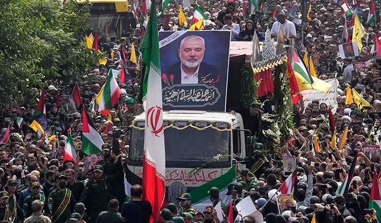 Την Πέμπτη, χιλιάδες άνθρωποι σε πένθος, με παλαιστινιακές σημαίες ή πορτρέτα του Ισμαήλ Χανίγια, παραβρέθηκαν στην κηδεία του, που σημαδεύτηκε από προτροπές για εκδίκηση.
