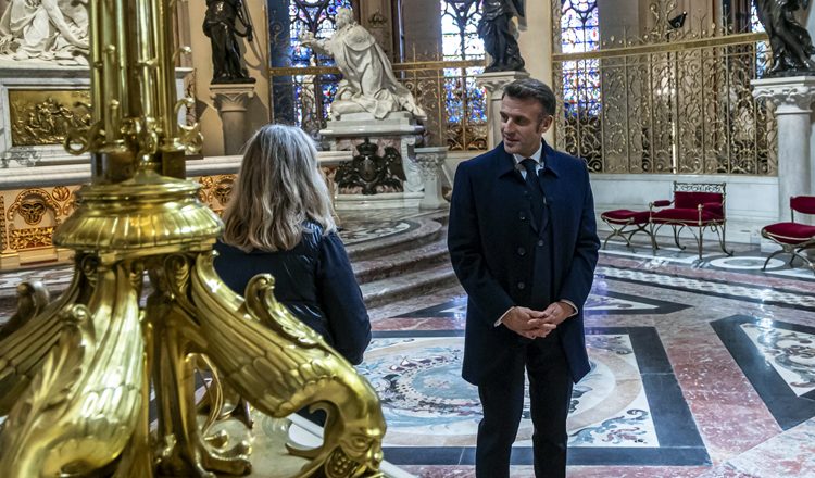 Ο Γάλλος Πρόεδρος Εμανουέλ Μακρόν επισκέφθηκε τον καθεδρικό ναό της Παναγίας των Παρισίων, για να δει μόνος του το ανακαινισμένο εσωτερικό πριν από την επαναλειτουργία του στις 8 Δεκεμβρίου.