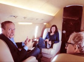 Μια άλλη φωτογραφία δείχνει τον σκηνοθέτη να κάθεται σε ένα ιδιωτικό αεροπλάνο δίπλα στον Λάρι Σάμερς, τον πρώην πρόεδρο του Χάρβαρντ, ο οποίος πρόσφατα αποκαλύφθηκε ότι ρωτούσε τον Έπσταϊν για συμβουλές γνωριμιών, σε μια σειρά αλληλογραφίας.