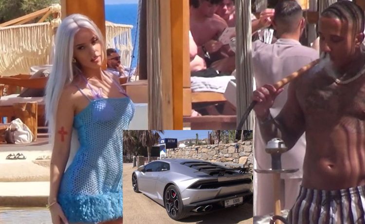 Η κάμερα του Mykonos Live TV τους απαθανάτισε να χαλαρώνουν στο SantAnna στην Παράγκα μαζί με μεγάλη παρέα. Ο 29χρονος τράπερ έφτασε στο γνωστό beach bar restaurant με πολυτελή Lamborghini και απόλαυσε όλες τις ανέσεις που προσφέρει το συγκεκριμένο μαγαζί, από ξαπλώστρες-κρεβάτια μέχρι ναργιλέ.