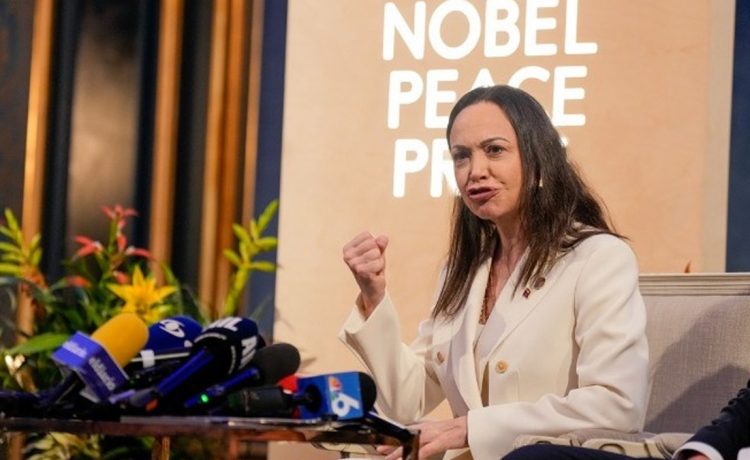 Η 58χρονη Ματσάδο, η οποία ζούσε κρυμμένη στη Βενεζουέλα από τον Αύγουστο του 2024, εγκατέλειψε την πατρίδα της υπό άκρα μυστικότητα και ταξίδεψε στη Νορβηγία, όπου έφθασε καθυστερημένα και δεν μπόρεσε να παραστεί στην τελετή απονομής του Νόμπελ Ειρήνης.
