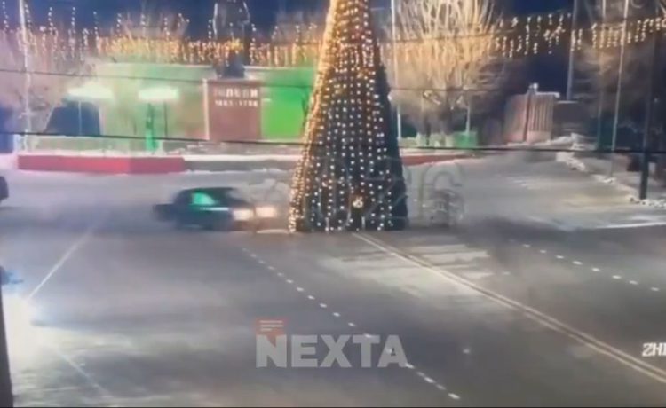 Εντυπωσιακό βίντεο απεικονίζει ένα νεαρό οδηγό στο Καζακστάν, ο οποίος στην προσπάθειά του να κάνει… στροφιλίκια με το Lada του, γύρω από το χριστουγεννιάτικο δέντρο της πόλης, ύψους 12 μέτρων, στην κεντρική πλατεία του Σαριαγκάς, χάνει τον έλεγχο του αυτοκινήτου και πέφτει με φόρα πάνω στο έλατο, γκρεμίζοντάς το.
