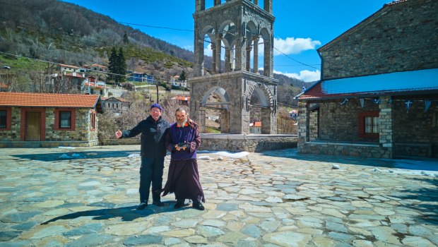 «Η ρουτίνα της Εκκλησίας κάνει καλό –όπως γίνεται και στα μοναστήρια– έτσι κι εγώ εδώ κάνω κανονικά όλες τις ακολουθίες και συνήθως έχω την κάμερα μαζί μου, με όλο τον εξοπλισμό. Ανάλογα με την εποχή του χρόνου, έχω λιγότερα ή περισσότερα βίντεο κάθε μέρα. Συνήθως, πηγαίνω τα παιδιά μου –τον Παναγιώτη και την Ελένη– στο σχολείο, πίνω έναν καφέ στο καφενείο και ξεκινάω». Τα …τηλεοπτικά του γυρίσματα τα αφήνει μόνο για λίγο και συγκεκριμένα την Εβδομάδα του Πάσχα, αφού άλλωστε δεν προλαβαίνει από τις πολλές λειτουργίες στις εκκλησίες.