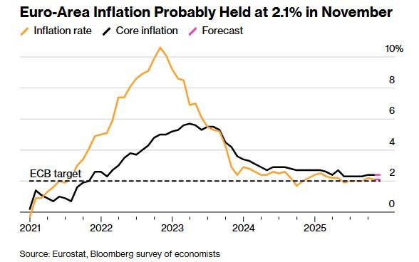 Ο πληθωρισμός στην ευρωζώνη, ο οποίος αναμένεται να παραμείνει κοντά στο 2%, θα πρέπει να είναι αρκετός για να πείσει τους αξιωματούχους ότι μπορούν να αποφύγουν να προσαρμόσουν τα επιτόκια τον Δεκέμβριο.