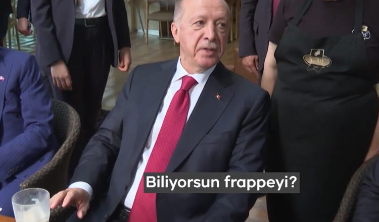 Μπροστά στις κάμερες, ο Τούρκος πρόεδρος ζήτησε από την υπάλληλο να του φέρει έναν καφέ, η οποία με έκπληξη τον άκουσε να παραγγέλνει έναν ελληνικό καφέ… φραπέ.