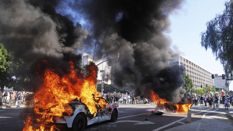 Ο Δημοκρατικός κυβερνήτης της Καλιφόρνια, ο Γκάβιν Νιούσομ, εξεγέρθηκε χθες Δευτέρα εναντίον της απόφασης να αναπτυχθούν εκατοντάδες μέλη του σώματος των πεζοναυτών στο Λος Άντζελες για την προστασία των ομοσπονδιακών λειτουργών και των ομοσπονδιακών κτηρίων, κρίνοντας πως ικανοποιεί μόνο «τη διεστραμμένη φαντασίωση του δικτατορικού προέδρου» — του Ρεπουμπλικάνου Ντόναλντ Τραμπ.