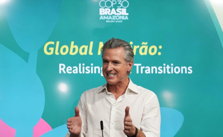 «Ο Τραμπ είναι προσωρινός», τόνισε ο Γκάβιν Νιούσομ στην Μπελέμ, πόλη στο βραζιλιάνικο τμήμα του Αμαζονίου όπου φιλοξενείται η σύνοδος του ΟΗΕ για το κλίμα, χωρίς αντιπροσώπευση της αμερικανικής ομοσπονδιακής κυβέρνησης — για πρώτη φορά στην ιστορία των διεθνών συναντήσεων αυτής της φύσης.