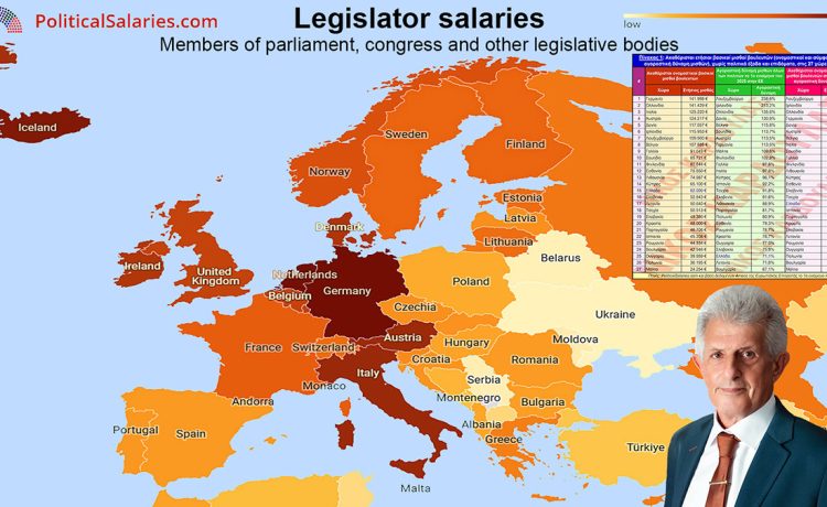 Λαμβάνοντας δεδομένα από το PoliticalSalaries.com και από τη βάση δεδομένων Ameco της Ευρωπαϊκής Επιτροπής, συντάχθηκε ο παρακάτω Πίνακας 1, όπου απεικονίζονται οι ακαθάριστοι ετήσιοι ονομαστικοί βασικοί μισθοί των βουλευτών χωρίς πολιτικά έξοδα και επιδόματα, η αγοραστική δύναμη των μισθών όλων των πολιτών σε κάθε χώρα το 1ο ενιάμηνο του 2025 και για πιο δίκαιη σύγκριση των μισθών των βουλευτών, οι ακαθάριστοι ετήσιοι βασικοί μισθοί χωρίς πολιτικά έξοδα και επιδόματα σύμφωνα με την αγοραστική δύναμη μισθών, στις 27 χώρες της Ευρωπαϊκής Ένωσης.